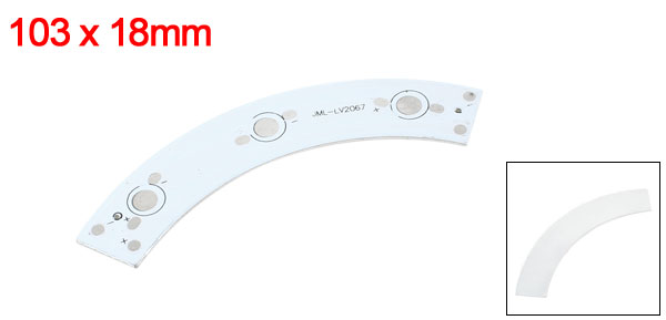 Product Name LED Aluminum PCB Circuit Board Fit for 3 x 1W/3W/5W LEDs(Series) Type Cresent Shape Size 103 x 18mm/ 4.1" x 0.7"(L*W) Thickness 1.4mm/0.055" Weight 7g Materials Aluminum Main Color White, Silver Tone Package Content 1 x LED Aluminum PCB Circuit Board - Reviews