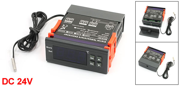LED Digital Display Panel Mount Temperature Controller DC 24V w Thermocouple