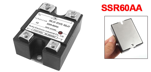 Product Name Solid State Relay Material Metal, Plastic, Electric Parts Type SSR-60AA Working Current 60A Input AC 90-280V Output AC 24-480V Size (Approx.) 4.2 x 3.2 x 5.6cm/ 1.7" x 1.2" x 2.2" (L*W*H) Main Color Black, Clear Weight 88g Package Content 1 x Solid State Relay - Reviews