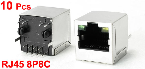 Product Name RJ45 LED Jack Feature RJ45 8P8C Main Material Plastic, Stainless Steel Color Black, Silver Tone LED Quantity 2 LED Color Green, Yellow Total Pin Number 12 Pin Type Round Pin Pin Angle 0 Degree Angle Pins(PCB Plug-in Type, Vertical ) Each Size (Approx.) 16 x 15.5 x 16mm / 0.63" x 0.61" x 0.63" (L*W*H) Net Weight 60g Package Content 10 x RJ45 LED Jack - Reviews