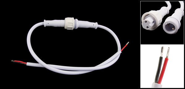 Product Name 2 Pin Waterproof Connector Way to Connect Male and Female Ends Push In Material (External) PVC Plastic Color White Cable Outside Diameter 4mm/ 0.16" Total Length 20cm/ 7.9" Weight 15g Package Content 1 x 2 Pin Waterproof Connector Cable - Reviews