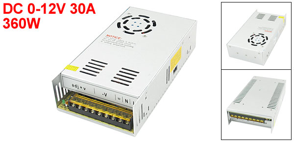 Product Name Switch Power Supply Model No. S-360-12 Input AC 100-120V 60Hz, AC 200-265V 50Hz Output DC 0-12V 30A Output Power 360W Outline Size 21 x 11 x 5cm/ 8.3" x 4.3" x 2"(L*W*H) External Color Silver Tone Net Weight 783g Package Content 1 x Switch Power Supply - Reviews