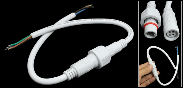 Product Name 4 Pin Waterproof Connector Connect Type Male to Female Plug Material (External) PVC Plastic Color White Cable Outside Diameter 5.5mm / 0.22" Total Length 40cm/ 15.7" Weight 33g Package Content 1 x 4 Pin Waterproof Connector Cable - Reviews