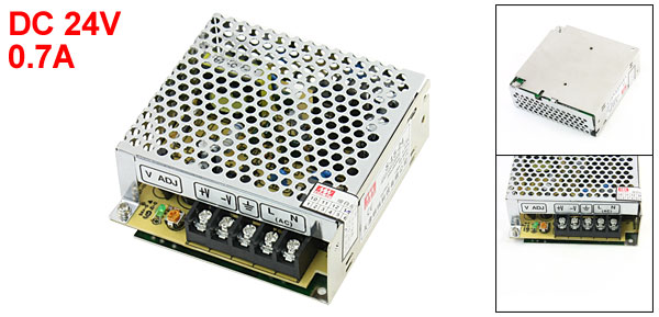 Output DC 24V, 0.7A Terminal Quantity 5 Total Size 9.8 x 9.6 x 3.7cm / 3.8" x 3.7" x 1.5" (L*W*T) Case Material Metal Main Color Silver Tone Weight 300g Package Content 1 x Switching Power Supply - Reviews