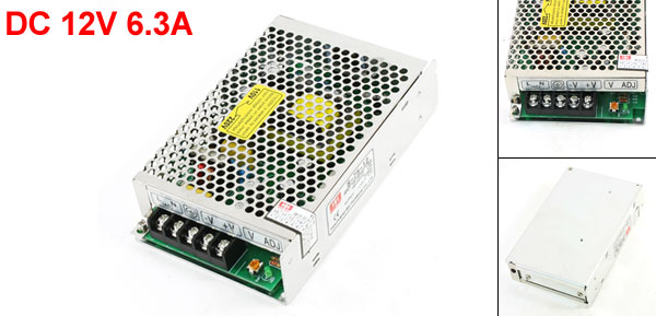 Output DC 12V, 6.3A Terminal Quantity 5 Total Size 16 x 9.7 x 3.7cm / 6.3" x 3.8" x 1.5" (L*W*T) Case Material Metal Main Color Silver Tone Weight 460g Package Content 1 x Power Supply Driver - Reviews