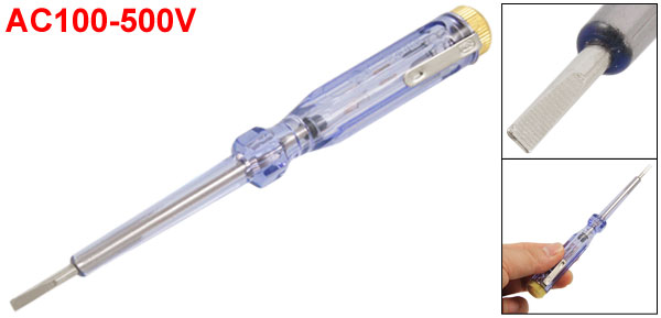 Product Name Electroprobe Voltage AC100-500V Casing Material Plastic Slotted Bit Width 3mm/0.11" Size(Approx.) 14.2 x 1.3cm/5.6" x 0.5"(L*Dia.) Color Clear, Light Blue Weight 18g Package Included 1 x Electroprobe - Reviews