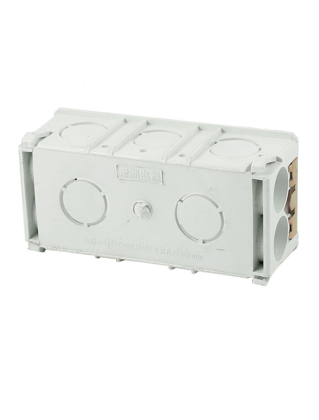 Product Name Pattress Back Box Installing Thread Hole Diameter 3.7mm/ 0.14" Installing Thread Hole Center Distance 121mm/4.7" Total Size 135 x 65x 45mm/5.3" x2.5" x 1.8"(L*W*H) Material Plastic Color Light Gray Net Weight 90g Package 1 x Pattress Back Box - Reviews
