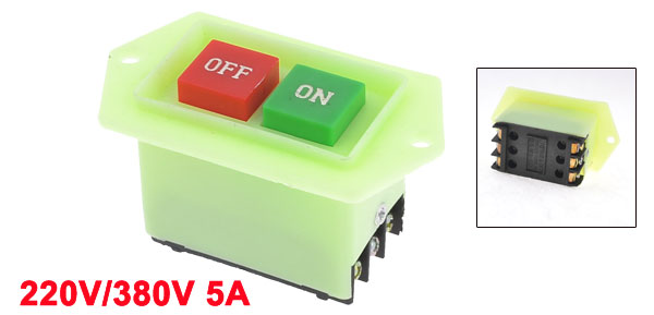 Product Name Push Button Switch Material Plastic, Metal Color Light Green Voltage 380V 220V AC Rated Current 5A Dimension 9 x 5 x 5cm/ 3.5" x 2" x 2" (L*W*H) Mount Part Size 5.5 x 3.5cm/ 2.2" x 1.4" (L*W) Mount Hole Dia 4mm/ 0.16" Weight 56g Package Content 1 x Push Button Switch - Reviews
