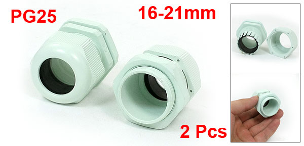 Light Green Plastic Waterproof PG25 16-21mm Diameter Cable Gland 2 Pcs