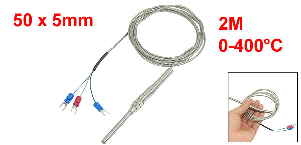 Liquid Measuring 50mm x 5mm PT100 Type Earth Thermocouple Probe 2 Meters