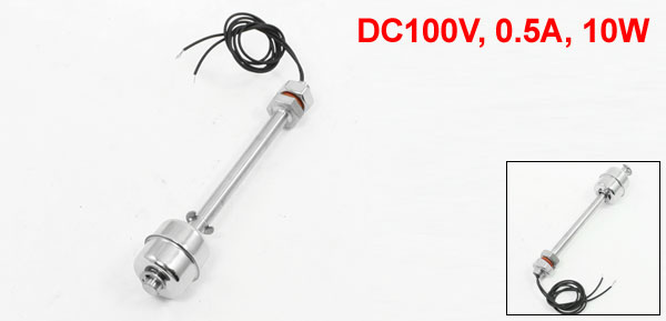 Product Name Water Level Sensor Float Ball Material Stainless Steel Float Body Material Stainless Steel Voltage, Current, Power DC100V, 0.5A, 10W Contacts NO + NC Max Breakdown Voltage/ Max Carry Current 220V 1.0A Max Contact Resistance 100mΩ Temperature Rating -10 to +85 Degree Float Ball Size 2.6 x 2.6cm / 1" x 1" (H*D) Screw Thread Diameter 9.5mm/ 0.37" Rod Diameter 8mm/ 0.3" Body Total Length 14cm/ 5.5" Cable Length 30cm/ 11.8" Color Silver Tone Weight 57g Package Content 1 x Water Level Sensor - Reviews
