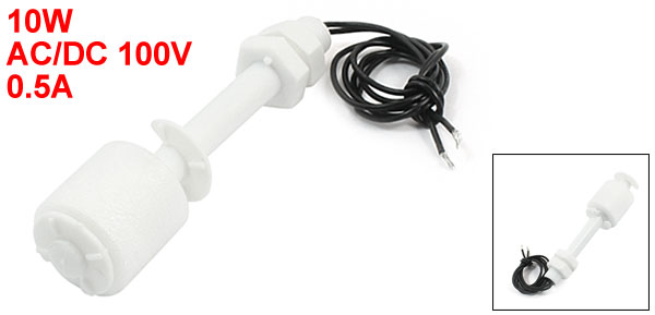 Product Name Float Switch Model OKD-1075P Max Contact Rating 10W Max Switching Voltage AC/DC 100V Max Switching Current 0.5A Max Breakdown Voltage DC 110V Max Carry Current 1A Max Contact Resistance 100mΩ Temperature Rating -10 ~ +85 °C Float Ball Material PP Float Body Material Plastic Float Ball Size(Approx) 21 x 23mm / 0.83" x 0.9"(L*D) Thread Dia(Approx) 10mm / 0.4" Nut Dia(Approx) 15mm / 0.6" Bottom Clip Dia(Approx) 18mm / 0.7" Body Total Length 90mm / 3.5" Cable Length 30cm / 11.8" Color White Net Weight 60g Package Content 1 x Float Switch - Reviews