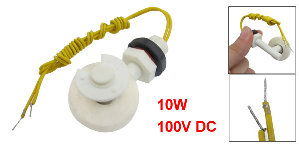 Product Name Water Level Sensor Model No. LGXTY Max Contact Rating 10W Max Switching Voltage 100V DC Max Switching Current 0.5A Max Breakdown Voltage 220V DC Max Carry Current 1.0A Max Contact Resistance 100mΩ Temperature Rating -10 ~ +60 °C / 85 °C Float Ball Material PP Float Body Material PP Float Ball Size(Approx) 6 x 29.6mm / 0.24" x 1.15"(L*D) Thread Dia(Approx) 11.3mm / 0.44" Nut Dia(Approx) 21mm / 0.827" Bottom Clip Dia(Approx) 20mm / 0.79" Body Total Length(Approx) 53mm / 2.1" Body Total Height(Approx) 25mm / 1" Cable Length 37cm / 14.6" Color White, Yellow Net Weight 13g Package Content 1 x Water Level Sensor - Reviews