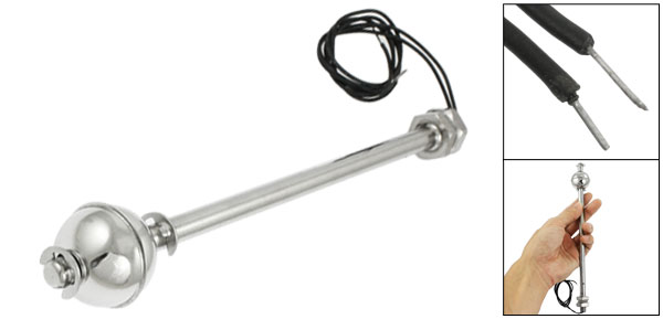 Product Name Water Level Sensor Max Contact Rating 10W Max Switch Voltage 100V DC Max Switch Current 0.5A Max Breakdown Voltage 220V DC Max Carry Current 1.0A Max Contact Resistance 100m Ohm Temperature Rating -10 ~ +85 Degree Float Ball Material Metal Float Body Material Stainless Steel Float Ball Size 30 x 29mm / 1.2" x 1.1" (D.*H) Screw Thread Diameter 9.7mm/ 3/8" Retaining Clip Diameter 15mm / 0.6" Body Length 220mm / 8.7" Cable Length 31cm / 12" Color Black & Silver Tone Weight 59g Package Content 1 x Water Level Sensor - Reviews