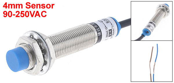 Product Name Inductive Proximity Switch Model LJ12A3-4 J/EZ Theory Inductive Type Sensor Wire Type DC 2 Wire Type (Brown, Blue) Switch Appearance Type Cylinder Type, Metal Shell Output Type PNP, NO Thread Dia 12mm/0.47" Detecting Distance 4mm/ 0.16'' Supply Voltage 90-250VAC Current Output