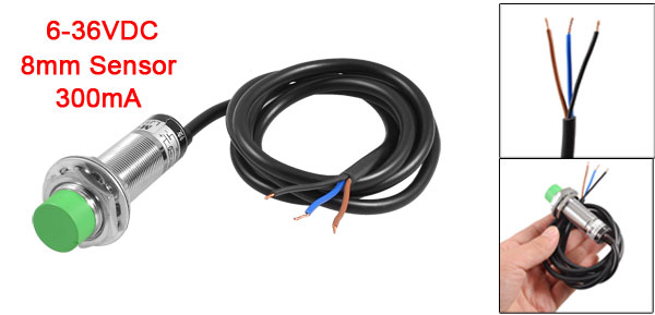 Product Name Inductive Proximity Switch Model LJ18A3-8-Z/BX Output Type NPN NO 3 Wires Working Voltage 6-36VDC Output Current 200mA Sensory Distance 8mm Head Dia. 16.5mm / 0.65" Mounting Thread Dia. 8mm / 0.7" Body Size(Approx) 6.6 x 3cm / 2.6" x 1.2" (L*D Max) Cable Length(Approx) 1.15M / 4Ft External Material Plastic Weight 86g Package Content 1 x Inductive Proximity Switch - Reviews