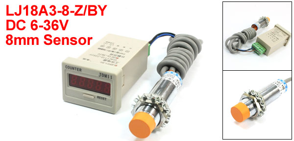 Product Name Proximity Sensor Switch w Counter Counter Model JDM11-5H Sensor Model LJ18A3-8-Z/BY Theory Inductive Sensor Wire Type 3 Wire Type (Brown, Blue, Black) Switch Appearance Type Cylinder Type, Metal Shell Output Type NO, PNP