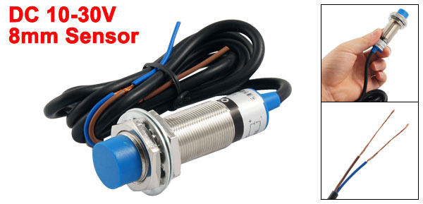 Product Name Inductive Proximity Switch Model LJ18A3-8-Z/EX Theory Inductive Type Sensor Head Dia. 16mm/0.62" Threaded Dia. 17mm/0.66" Wire Type 2 Wire Type (Brown, Blue) Switch Appearance Type Cylinder Type, Metallic Shell Output Type NO (Normal Open) Detecting Distance 8mm Supply Voltage DC 10-30V Current Output 200mA Detect Object Iron Total Size 65 x 30mm/ 2.55" x 1.1" (L*Max.D) Cable Length 105cm/ 41.3" External Material Plastic, Metal Net Weight 70g Color Black, Silver Tone, Blue Package Content 1 x Inductive Proximity Switch - Reviews