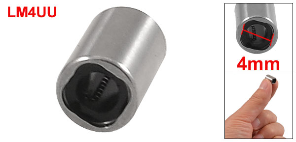 Product Name Linear Ball Bearing Bushing Model LM4UU Material Metal, Rubber Inside Diameter 4mm/0.16" Outside Diameter 8mm/0.31" Length 12mm/0.47" Color Silver Tone Weight 2g Package Content 1 x Ball Bearing - Reviews