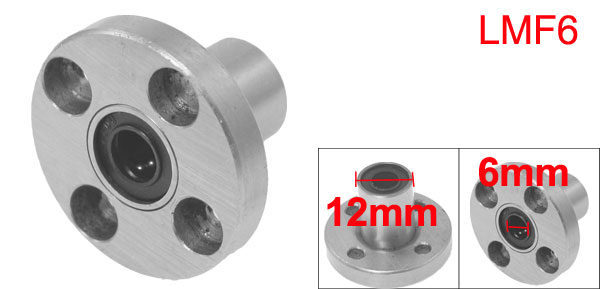 Product Name Linear Bearing Model LMF6 Material Metal, Rubber Inner Diameter 6mm/ 0.24" Outer Diameter 12mm/ 0.75" Overall Size 19 x 28mm/ 1.14" x 1.57"(L*Max.D) Mount Hole 3mm/ 0.12" Color Silver Tone Net Weight 24g Package Content 1 x Linear Motion Ball Bearing - Reviews