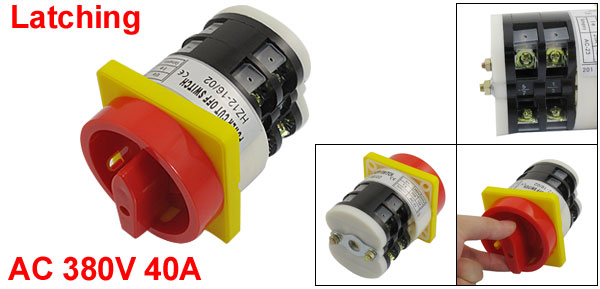 DetailsLock 8 Terminals 2 Position AC 380V 40A Cam Combination Changeover Switch Rotary  Product Name Changeover Switch Model No. HZ12-16/02 Action Type Latching Ui AC 380V Ith 40A Ue(AC-23) 380V/500V Ie(AC-23) 25A/12A Positions 2(0-1) Terminal Number 8 Thread Hole Distance 56mm/ 2.2"(Center to Center) Thread Hole Size 6 x 5mm/ 0.24" x 0.2"(L*W) Body Diameter 70mm/ 2.76" Overall Size 73x 73 x 110mm / 2.87" x 2.87" x 4.33"(L*W*H) External Material Plastic Net Weight 331g Package Content 1 x Changeover Switch