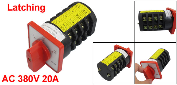 Product Name Changeover Switch Model No. HZ5D-20/4 M08(102)-B Action Type Latching Ui AC 380V Ith 20A Power 4KW Positions 3(1-0-2) Terminal Number 6 Thread Hole Distance 46mm/ 1.81"(Center to Center) Thread Hole Diameter 4.4mm/ 0.17" Body Diameter 56mm/ 2.2" Overall Size 60x 60 x 113mm / 2.36" x 2.36" x 4.45"(L*W*H) External Material Plastic Net Weight 245g Package Content 1 x Changeover Switch
