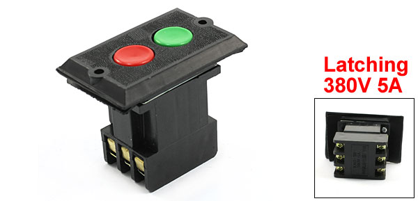 Product Name Push Button Switch Model KAO-5B Type Latching Voltage & Current 380V 5A Total Size (Approx.) 7.3 x 4.8 x 6.3cm/2.9" x 1.9" x 2.5"L*W*H) Mounting Size 4.3 x 3.3cm/1.7" x 1.3"(L*W) Color Black, Red, Green External Material Metal, Plastic Net Weight 72g Package Content 1 x Push Button Switch - Reviews