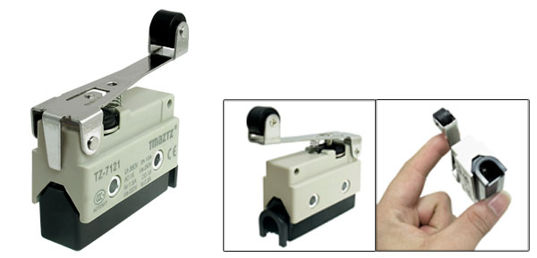 Product Name Limit Switch Model No. TZ-7121 Actuator Action Momentary Actuator Type Long Hinge Roller Lever Contact Type 1 NO, 1 NC, (SPDT) Ui 380V Ith 10A AC-15 Ue: 250V, le: 1.5A DC-13 Ue: 220V, le: 0.3A Roller Size 1.2 x 0.8cm / 0.5" x 0.3"(D*H) Actuator Size 6.6 x 1.9cm / 2.6" x 0.7"(L*W*) Hole Dia 0.43cm / 0.17" Main Body Size 5.4 x 2.1 x 3.7cm / 2.1" x 0.8" x 1.5"(L*W*H) Overall Height 6.4cm / 2.5" Material Metal, Plastic & Rubber Color Grey, Black Net Weight 52g Package Content 1 x Limit Switch - Reviews