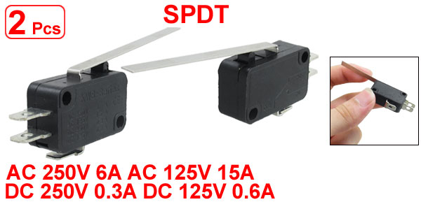 Long Straight Hinge Lever 3 Pins Basic NO NC Momentary Micro Switch 2 Pcs