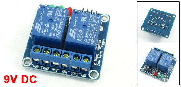 Product Name Relay Module Model SRD-09VDC-SL-C Number of Channels 2 Coil Voltage 9V DC Load 10A, AC 250V/125V, DC 30V/28V Size 4.3 x 4.3 x 2cm/1.7" x 1.7" x 0.78"(L*W*H) Material PCB Color Blue Weight 37g Package 1 x Relay Module - Reviews