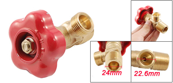 Product Name Gas Angle Valve Material Brass, Metal Color Gold Tone, Red Inner Valve Hole Dia 15mm / 0.59" Thread Dia. 22.6mm / 0.89" 24mm / 0.94" Level Handle Dia. 60mm / 2.4" Overall Height 92mm / 3.6" Net Weight 278g Package Contents 1 x Gas Angle Valve - Reviews