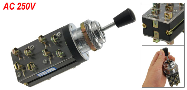 Product Name Monolever Switch Model LSS1-42 Type 4-direction Self-locking Type Material Plastic, Alloy, Electric Parts Working Voltage / Current AC 250V 10A Rated Voltage 150V / 250V /600V Rated Current 15A / 10A / 4A Delination Angle 30 Degree Fixing Thread Diemeter 2.95cm / 1.16" Lever Length 4cm/ 1.6" Overall Size (Approx.) 15 x 4.8cm/ 5.9" x 1.9" (L*Max.D)