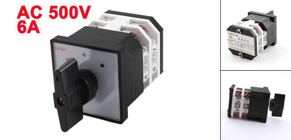 DC-13: 0.67ATerminals 8 Screw Terminals Positions 3 Position Pole Numbers 2 Pole Panel Size 50 x 50 x 7mm/2" x 2" x 0.28"(L*WT) Overall Size 5 x 5 x 9cm /2" x 2" x 3.5"(L*W*H) Total Weight 180g Net Weight 160g Package Content 1 x Changeover Switch