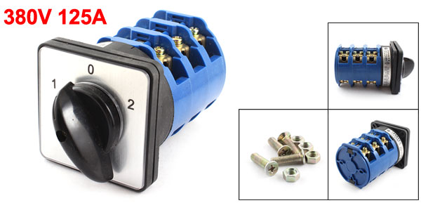 Product Name Combination Switch Model No. LW28-125/3D303 Ui 380V Ith 125A Positions 1-0-2(ON/OFF/ON) Terminal Number 12 Body Diameter 84mm / 3.3" Overall Size 88 x 88 x 160mm / 3.5" x 3.5" x 6.3"(L*W*H) External Material Plastic Color Black, Blue Net Weight 860g Package Content 1 x Combination Switch