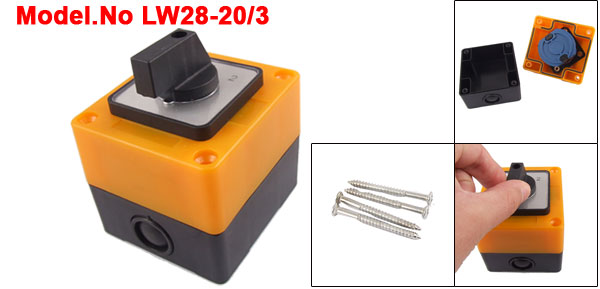 Product Name Changeover Cam Switch Model.No LW28-20/3 Number of Poles 3 Posiotion Quantity 3 Terminals Quantity 12 Ue 380V, 220V Ui 500V Ith 20A Handle Size 3.5 x 0.9cm / 1.37" x 0.35"(L*W)
