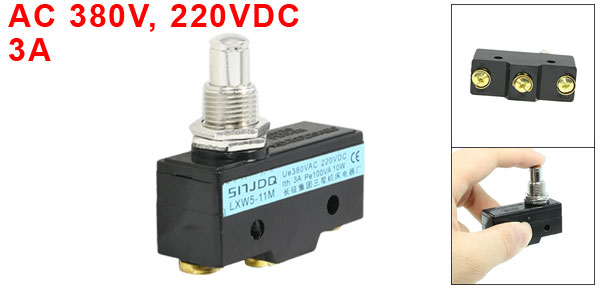 Product Name Limit Switch Model No. LW5-11M Terminal 3 Screw Terminal Actuator Type Push Plunger Contact Configuration 1NO,1NC(SPDT) Ue AC 380V, 220VDC Ith 3A Pe 100VA, 10W Switch Body Size 5 x 1.8 x 2.7cm / 1.97 x 0.7 x 1.1"(L*W*H) Fixing Holes Dia. ~0.4cm / 0.16“ Distance Between Centers of Fixing Holes ~2.5cm / 0.98" Actuator Size Height from Body (open): ~1.8cm / 0.71” Height from body (closed): ~1.3cm / 0.51" Thread: 1.2 x 1cm / 0.47 x 0.39" (D*H) Color Black,Gold Tone Net Weight 42g Package Content 1 x Limit Switch - Reviews
