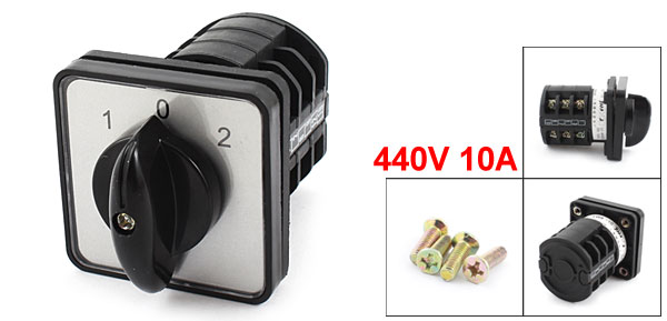Product Name Combination Switch Model No. LW8-10 Ui 440V Ith 10A Positions 1-0-2(ON/OFF/ON) Terminal Number 12 Body Diameter 44mm / 1.7" Overall Size 50 x 50 x 77mm / 1.97" x 1.97" x 3.0"(L*W*H) External Material Plastic Color Black Net Weight 117g Package Content 1 x Combination Switch
