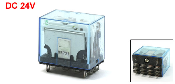 Product Name Electromagnetic Relay Model No. LY4N-J Coil Voltage DC24V Type 4PDT Pin Quantities 14 Indicator Light Color Green Overall Size (Approx.) 4 x 4 x 2.7cm/1.6" x 1.6“ x 1.1"(L*W*H) Shell Material Plastic, Metal Main Color Clear Blue, Black Net Weight 70g Package Content 1 x Electromagnetic Relay - Reviews