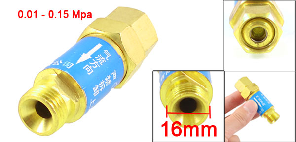 Product Name Dry Flashback Arrestor Main Color Gold Tone Mateiral Plated Metal Medium Acetylene Gas, Liquefied Petroleum Gas etc. Working Pressure 0.01 - 0.15 Mpa Flow Capacity more than 3cubic meter/hour Male Thread Size 16mm/ 0.63" Female Thread Size 16mm/ 0.63" Overall Size 6.5 x 2.2cm/ 2.6" x 0.86" (L*Max. D) Net Weight 98g Package 1 x Dry Flashback Arrestor - Reviews