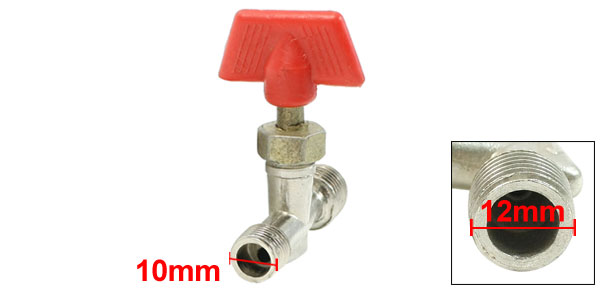 DetailsM/M 12mm to 10mm Male Thread Air Compressor Inline Manual Valve  Product Name Air Compressor Manual Valve Male Thread Size 12mm/ 0.47" 10mm/ 0.4" Total Size 50 x 41 x 13mm/ 2" x 1.6" x 0.5"(L*W*T) Material Plastic, Metal Main Color Red, Silver Tone Weight 23g Package Content 1 x Air Compressor Manual Valve