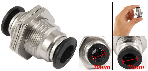 Product Name Pneumatic Fitting Design Full Port Total Size 36 x 33mm/1.4'' x 1.3''(L*Max.D) Fit Tube Outer Diameter 10mm/0.39'' Thread Diameter 20mm/0.79'' Material Plastic, Metal Color Silver Tone, Black Weight 45g Package Content 1 x Pneumatic Fitting - Reviews