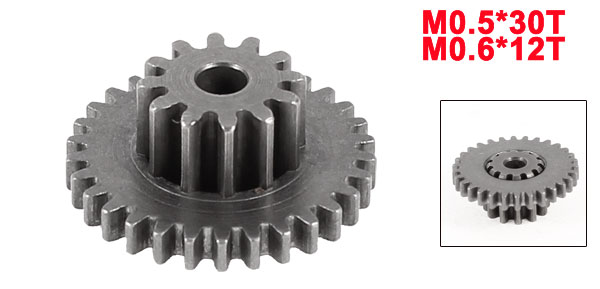 Product Name Gear Model M0.5*30T,M0.6*12T Modulus M0.5,M0.6 Teeth Quantity 30T,12T Hole Diameter 2.5mm/ 0.1" Part Size Big Gear:15 x 2mm/ 0.59" x 0.08"(D*T)