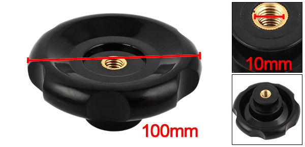 M10 100mm Diameter Brass Insert Clamping Plastic Corrugated Knob Black