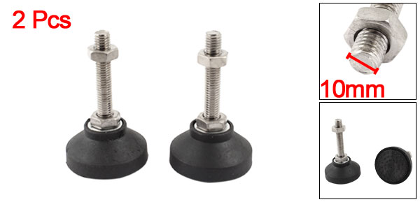 Product Name Leveling Feet Type Screw On Head Diameter 50mm / 2" Thread Length 50mm / 2" Thread Diameter 10mm / 0.39" Total Height 85mm / 3.3" Hex Diameter 16.8mm/ 0.66" Material Metal, Plastic Color Silver Tone, Black Weight 192g Package Content 2 x Leveling Feet - Reviews