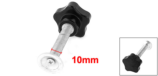 DetailsM10 x 60mm Male Thread Plastic Star Head Clamping Knob Grip  Product Name Star Knob Type Screw On Head Diameter 40mm / 1.6" Thread Length 60mm/ 2.4" Thread Diameter 10mm/0.4“ Total Height 87mm / 3.4" Material Metal, Plastic Color Silver Tone, Black Weight 66g Package Content 1 x Star Knob