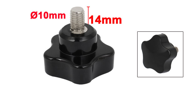 M10x14mm Thread Black Plastic Star Head Screw On Clamping Knob Grip 47mm Dia