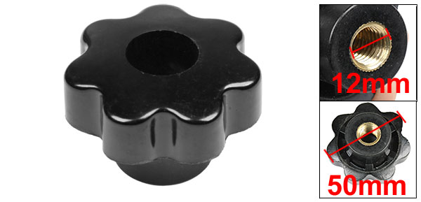 Product Name Star Knob Type Screw On Head Diameter 50mm / 1.97" Thread Diameter 12mm / 0.47" Total Height 34mm / 1.3" Material Metal, Plastic Color Gold Tone, Black Weight 46g Package Content 1 x Star Knob - Reviews