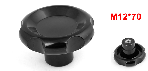 Product Name Star Knob Type Screw On Head Diameter 70mm / 2.8" Female Thread Diameter M12 Female Thread Depth 20mm/ 0.8" Total Height 45mm / 1.8" Material Metal, Plastic Color Silver Tone, Black Weight 82g Package Content 1 x Star Knob - Reviews