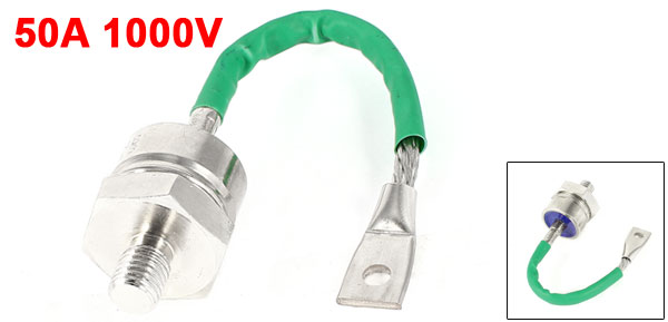 Product Name Rectifier Diode Model ZP50A Average Forward Current 50A Repetitive Peak Reverse Voltage(VRRM) 1000V Thread Diameter 12mm / 0.5" Main Body Size 3.6x 4cm/ 1.4" x 1.6" (D*H) Overall Length 20cm / 8" Material Metal, Plastic Color Green, Silver Tone Net Weight 116g Package Content 1 x Rectifier Diode - Reviews