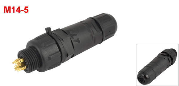 Product Name Waterproof Connector Model M14-5 Degree of Protection IP67 IP68 Cable Range 4- 8mm / 0.16"- 0.3" Total Size 19 x 62mm / 0.7" x 2.5" (D*L) Material Plastic Color Black Net Weight 13g Package Content 1 x Waterproof Connector - Reviews